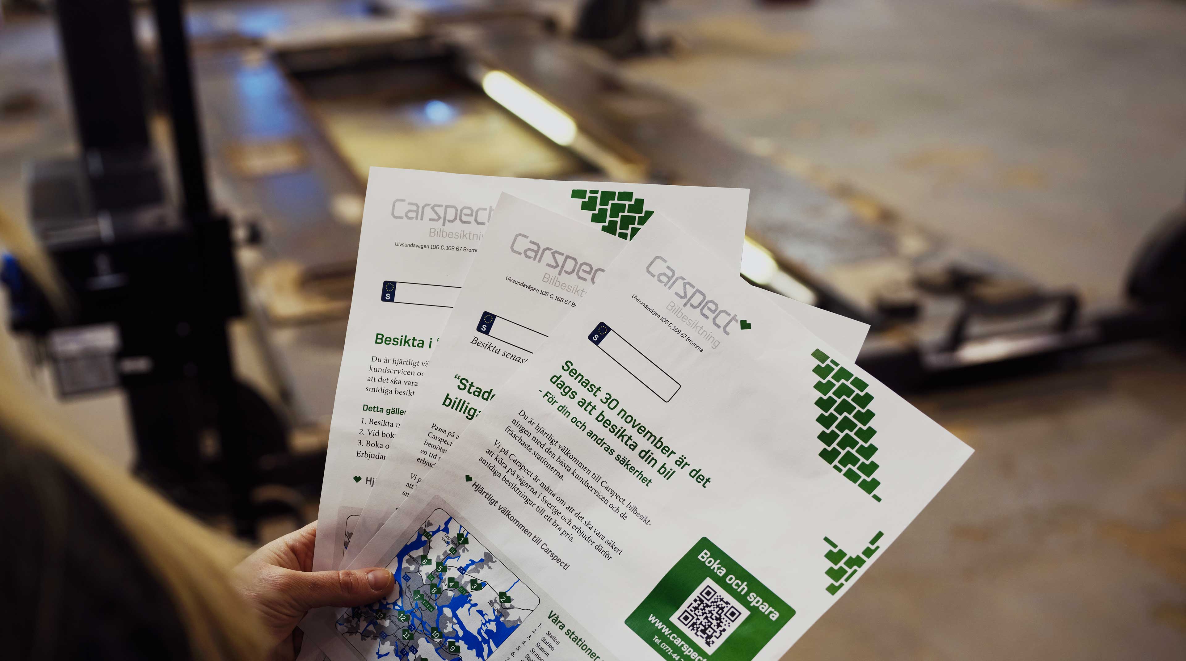 För att kunna nå nya potentiella kunder köper Carspect adresser av Transportstyrelsen, adresser till ägare av personbilar och lätta lastbilar som snart ska kontrollbesiktigas, men det behövs rätt slags utskick för att nå de potentiella kunderna med tilltalande kommunikation.